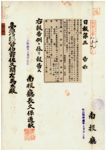 九二 第七六号 明治四三年一〇月告示第九四号蕃務官吏駐在所位置及管轄区域表中変更及ヒ設置ノ件