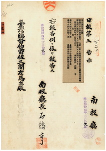 一三一 第一一五号 明治三九年勅令第三一八条ニ依ル台湾寄留者徴兵身体検査受検部隊ニ付キ通知ノ件