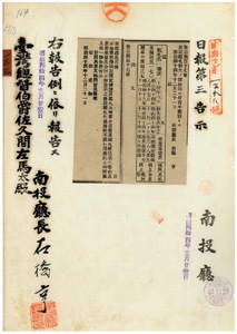 南投廳告示第百十七號食鹽請賣鑑札其外紛失ノ件