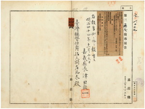 一四七 第一四号 明治四三年九月嘉義庁令第二六号砂糖包装改装場指定ニ付キ廃止ノ件