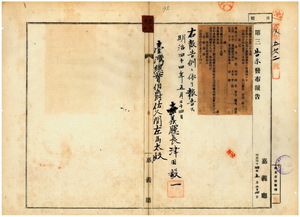六六 第二九号 台中庁管内ニ牛疫発生ニ付キ旨同庁ヨリ通知ノ件