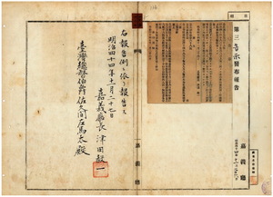 一〇五 第六八号 明治四四年八月下旬及九月上旬ニ於ケル暴風雨被害御救恤金配付ノ件