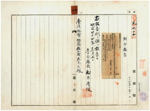 五 第二八号 明治四三年一月台南庁訓令第三号本庁判任官各官定員中警部補ノ定員並ニ各課各支庁判任官各官配置定員中鳳山支庁警部補ノ定員改正ノ件四 台湾総督府官制中改正(勅令第一二七号五月三日公布)・台湾総督府視学官特別任用令制定(勅令第一三一号五月三日公布)・移民事務ニ従事スル職員設置(勅令第九七号四月一五日公布)・台湾総督府国語学校官制中改正(勅令第九九号四月一五日)・台湾総督府中学校官制中改正(勅令第四六号三月二七日公布)・台湾総督府高等女学校官制制定(勅令第四七号三月二七日公布)台湾総督府地方官官制中改正(勅令第一二九号五月三日公布)・台湾総督府職員官等俸給令中改正(勅令第四八号三月二七日公布)ニ付キ内務大臣ヘ稟申並ニ台湾総督府国語学校長