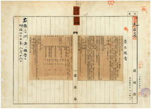 一〇三 第九六号 明治四四年二月台南庁告示第一一号中本埤圳曹公五里旧圳・蓮池埤ノ灌漑区域中追加ノ件