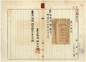 一〇五 第九八号 阿緱庁及ヒ嘉義庁両管内ニ牛疫発生ニ付キ両庁ヨリ通知ノ件