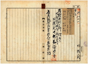 五八 第九号 徳島県ヨリ秩禄処分請願ニ関シ提出ノ証拠書類中居所不明者野々木透造・小畠修・野口氏太郎・神野助作ノ交付申出方依頼ノ件