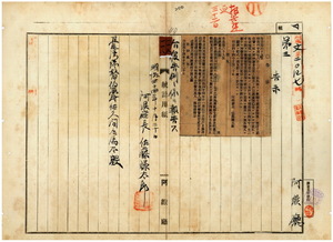 一一八 第六九号 暴風雨ニテ支庁庁舎倒潰ノ際阿緱庁泰慶里九棚庄ノ戸口調査簿亡失ニ付キ同庄ニ本居地又ハ寄留地ヲ有スルモノハ其戸主ヨリ所轄警察官吏派出所ヲ経由シテ庁長ヘ届出ノ件