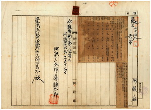 一三一 第八二号 阿緱庁港西中里旧■(艹+寮)庄ノ砂糖製造者楊安郎ニ交付シタル検査済証事故ニ依リ無効トス