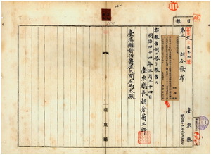 一五七 第五号 明治四二年一一月台東庁訓令第一五号警務所属警察監視区中庁直轄第二監視区内警察官吏派出所名称ノ欄「鹿寮」ヲ「老掩老掩」ニ改正ノ件
