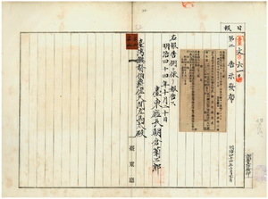 三二 第三二号 台中庁大肚下堡塗葛堀庄張汝賢ノ支那形船金吉興ノ船鑑札流失ニ付キ自今無効ノ旨台中庁ヨリ通知ノ件