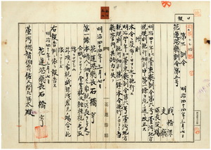 明治四四年三月七日付花蓮港庁訓令第五号明治四〇年七月台東庁令第六号台湾地方税規則施行細則中第一条ノ改正ハ誤謬ニ付キ花蓮港庁令第三号明治四四年三月七日付ニ改メ「明治四十四年三月花蓮港庁訓令第五号ハ衍」(明治四四年一二月二二日付)ト庁報正誤欄ニ掲記シテ訂正スル件