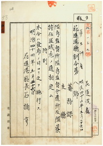 五三 第八号 隘勇監督所隘勇監督分遣所及隘■(艹+寮)担任区域制定ノ件