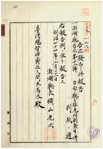 澎湖廳告示第十二號臺南廳ヨリ豚虎列剌發生通知ノ件