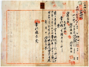 二 台北庁公共衛生費管理者台北庁長井村大吉ヨリ台北庁長井村大吉ニ出願シタル士林支庁管内北投庄給水用鉄管敷設工事ニ要スル台北庁芝蘭二堡頂北投庄ヨリ同堡北投庄ニ至ル官有土地水面無料使用願ニ付キ許可ノ件