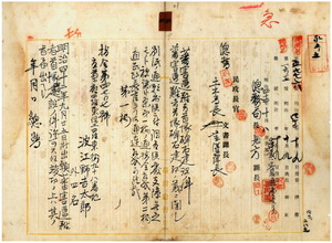 四 宜蘭庁下人民総代ノ宜蘭庁長中田直温ノ副申ニナリタル宜蘭庁羅東堡羅東街寄留江野吉太郎、同庁紅水溝堡鹿埔庄龍目井寄留江錦章・同庁員山堡珍仔満力庄寄留陳市元・同庁羅東堡羅東街寄留藍新・同庁本城堡宜蘭街乾乾門寄留李紹宗ヨリ出願ノ宜蘭庁員山堡金六結庄土名五結ノ墓地内ニ同庁管内兇蕃害遭難者ノ首塚碑石ヲ建設スルニ付キ許可ノ件(指令第四七〇七号)
