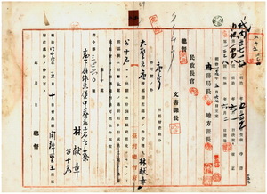 五 台中庁線東堡中藔庄ノ業主開守聖王管理人林献章ト信徒総代ノ同庁同堡同庄林庚子・同堡彰化街ノ鄭俊亭・鄭有福・林崧岳・張斐然・周坤厚・頼鳳儀・蔡仁恩・蔡城・王関柏ヨリ出願ノ大聖王廟所属財産ノ藍興堡蕃仔藔庄ノ畑地売却願許可ノ件(指令第三四六〇号)