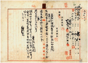 二六 台北仁済院長井村大吉ヨリ稟申ノ台北仁済院基本財産中台北庁擺接堡西盛庄土名到仔林ノ畑地ハ大嵙崁渓ニ沿ヒタル為メ先般来ノ水流変更ニ因テ漸次流失シ既ニ河底ト成リタルニ依リ基本財産所属土地処分ニ付キ認可ノ件(指令第三五六八号)