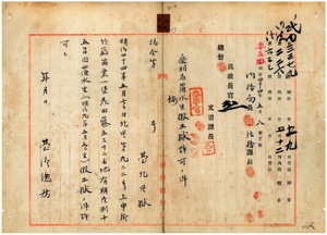 二七 台北監獄長典獄志豆機源太郎ヨリ匪徒刑罰令違反トシテ服役中ノ新竹庁苗栗一堡老田藔庄ノ受刑者羅水生ヲ行状善良・改悛ノ行為顕著ニシテ出獄後ノ保護充分ニシテ再犯ノ虞ナキ且ツ刑期三分ノ二ヲ経過シタルモ更ニ本人肺結核症ニ罹リ重体ニ陥リ余命幾許モ無キニ付キ仮出獄ノ義ヲ上申アリタル為メ許可按ヲ草シ高裁ヲ仰キ居リシ処五月一一日ニ受刑者死亡シタル為メ同志豆機典獄ヨリ仮出獄上申取消ノ上申アリタルニヨリ本案廃案トスル件(民内第三三七九号、210~269)