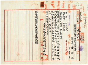 三 台中監獄長典獄武川銓之助ヨリ台湾総督ヘ仮出獄者陳阿三ノ病死申報ノ件