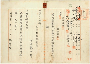 河內寬次郎看守退職一時金證書下附ノ件