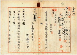 近藤明三郎看守退職一時金證書下附ノ件
