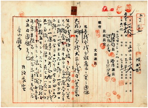 二 台北庁古亭村区長許春生・大龍斤区長黄玉階ノ出願ト台北庁長井村大吉ノ副申ニ依ル台北庁大加蚋堡大安庄ニ大安公学校ヲ設立シ従来ノ大龍斤公学校大安分校ヲ廃止スルノ儀及ヒ同庁芝蘭一堡社仔庄区長頼国春・士林区長何慶蚤・北投区長陳詠仁ノ出願ニ係ル芝蘭一堡社仔庄ニ社仔公学校ヲ設立シ八芝蘭公学校社仔分校ヲ廃止スルノ件孰レモ多額ノ債務ヲ負ヒ又ハ負ハントシテ独立セントスルモノニテ維持方法鞏固ナラスニ依リ詮議相成ラストシ其ノ旨ヲ示達スベク台北庁長ヘ通牒ノ件(民内第一七八八号・台北庶学第四〇二号、49~99)