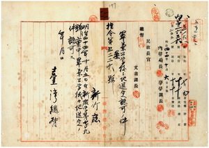 一一 新竹庁長家永泰吉郎ヨリ稟申ノ同庁罩蘭公学校々地選定ニ付キ認可ノ件(指令第五二二六号、197~198、図面は199~200で別に保管されている。)