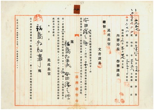 五 元福島県岩瀬郡木之崎尋常小学校訓導庶務課文書係勤務台東庁雇安田勝之助ヘ尋常小学校本科正教員無試験検定出願ニ付キ教員免許状授与ノ件