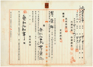六 元愛知県中島郡稲沢東尋常小学校訓導岸栄弥ヘ小学校本科正教員無試験検定出願ニ付キ教員免許状授与ノ件