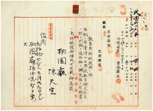 一五 三角湧公学校尖山分校勤務台湾公学校訓導陳天定ヘ台湾公学校訓導無試験検定出願ニ付キ教員免許状授与ノ件