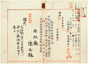 八 魚池公学校勤務台湾公学校訓導陳金龍ヘ台湾公学校訓導無試験検定出願ニ付キ教員免許状授与ノ件