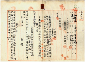 二 合資会社嘉義銀行代表社員頭取林寛敏ヨリ申請ノ合資会社嘉義銀行ノ定款変更認可ニ付キ総督ノ認可ヲ台湾総督府民政長官ヨリ嘉義庁長津田毅一ヘ通牒ノ件(指令第九五七号)