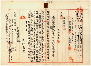 八 大蔵省理財局長勝田主計ヨリ台湾総督府照会ノ株式会社台湾商工銀行定款変更届ノ訂正方ニ関シ台湾総督府民政長官ヨリ阿緱庁長ヘ照会ノ件