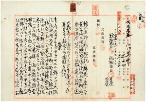 一八 輸入原料ニ対シテ輸入税ノ払戻ヲ受クヘキ菜子油及ヒ同油糟製造ノ際内外原料ニ依ル製品混合ノ場合ニ於ケル取扱ニ関シ大蔵省関税局長桜井鉄太郎及ヒ主税局長菅原通敬ヨリ台湾総督府民政部財務局長ヘ通知ニ付キ台湾総督府民政長官ヨリ台湾総督府税関長及ヒ各庁長ヘ通牒ノ件