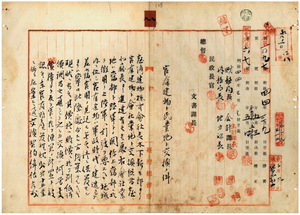 八 台湾建物株式会社社長木下新三郎ヨリ願出ノ台湾総督府民政部保管ノ台北城内撫台街元砲兵営跡地ノ官有建物ト台湾建物株式会社所有ノ台北庁大加蚋堡古亭村庄ノ民業地(永久兵営隣地)ト交換ノ件