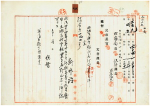 六 新竹庁長家永泰吉郎ヨリ稟申ノ新竹庁管内ノ苗栗一堡後壠庄ノ共業主謝煥ヲ謝文煥ヘ、同堡新港庄ノ共業主劉九和ヲ劉阿和ヘ、竹北一堡八十份庄ノ業主范金蓮ヲ范金連ヘ、苗栗二堡ノ旧社庄・苑裡庄・石頭坑庄ノ共業主陳清標ヲ陳標ヘ土地台帳登録氏名訂正方認可ノ件(指令第一七〇号)