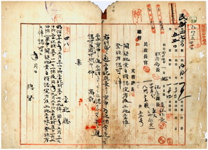 開墾地業主權認定及土地臺帳ニ登錄方認可ノ件(臺北廳、明治四十三年前期檢查開墾土地證據書類寫完、文山堡小格頭庄、排庄、大溪墘庄、烏月庄、土庫庄、石碇堡什份庄、石底庄、石硿仔庄、茄苳腳庄’友蚋庄、暖暖街、三爪仔庄、水返腳街、金堡里堡頂中股庄、芝蘭三堡水梘頭庄、三貂堡田洋庄、柑腳庄、三又坑庄、基隆堡猴洞庄、芝蘭一堡福德洋庄、坪頂庄)