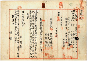 一七 桃園庁長西美波ヨリ稟申ノ游春呈・游君想ヘ桃園庁桃澗堡山頂庄ノ田、林廷琮・林啓卸・林廷瑛ヘ同庁同堡新路坑庄ノ墓、呂全・呂火旺ヘ同堡同庄ノ田、呂娘煇・呂衍栄・詹奎生・詹阿城・詹金喜・李祥廻・李祥論・張瑞和・蘇来福・詹金喜ヘ同庁同堡兎仔坑庄ノ田、張新石・張金中・呉氏阿尽ヘ同堡同庄ノ建物敷地、陳文科ヘ同堡崁仔脚庄ノ田、劉金水・卓阿水・卓阿弄・卓査某・卓清春・卓阿生・張阿発・張阿等・卓柏楓ヘ同庁同堡楓樹坑庄ノ田、卓伯智・張阿発・張阿等・三合会管理許悦面・鄭維驕ヘ同堡同庄ノ建物敷地ヲ開墾地業主権認定方認可ノ件(