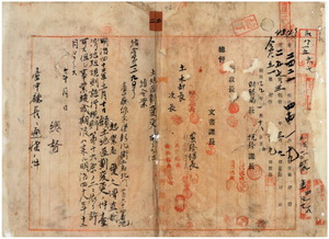 二 台中庁管内ノ起業者愛久沢直哉ヨリ出願ノ台中庁二林下堡後厝庄・二林下堡犂頭厝庄・深耕堡丈八斗庄・二林下堡山■(艹+寮)庄・深耕堡面前厝庄・深耕堡劉頼庄・深耕堡五庄仔庄・東螺西堡大湖厝庄ノ土地区画変更ノ件台湾地租規則施行規則第一六条ノ二ニ依リ許可ノ件(指令第一一九〇号)