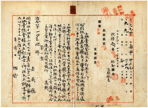 一 嘉義庁長津田毅一ノ稟申(明治四四年二月七日付嘉直第一七四号)ニ依リ明治四四年三月三日指令第一〇三四号ヲ以テ嘉義庁管内ノ土地台帳登録業主氏名訂正方ノ件ニ付、白沙墩堡客仔厝庄呉鎗ヲ呉象ニ、白沙墩堡内藔庄ノ王錬ヲ