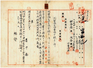 八 台中庁長枝徳二ヨリ稟申ノ二林下堡大排沙庄ノ開墾地ヲ糖業奨励規則ニ依リ陳梓成ヘ土地台帳登録方認可ノ件(指令第一五二六号)