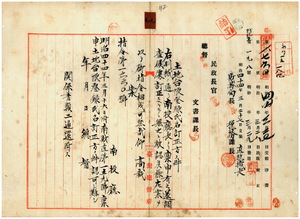 九 南投庁長久保通猷ヨリ稟申ノ武東堡松柏坑庄ノ土地台帳登録業主氏名蔡却世ヲ蔡却是ニ訂正方不認可ノ件(指令第一六六〇号)