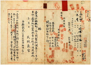 一六 台湾総督府民政長官ヨリ各庁長(台東・花蓮港・澎湖ヲ除ク)ヘ台湾地租規則取扱心得(明治三八年二月訓令第一九号)ニヨル開墾地調査方ニ付キ通達ノ件
