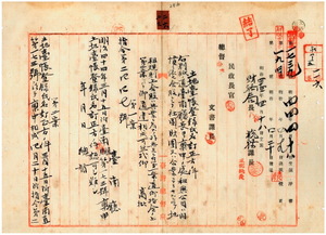 二六 台南庁長松木茂俊ヨリ稟申ノ土地台帳登録業主氏名興隆外里菜公庄・興隆内里覆鼎金庄土名新庄仔・興隆内里内惟庄土名凹仔底・赤山里赤山庄土名獅頭・興隆外里左営庄・大竹里大港埔庄・大竹里七老爺庄土名一甲・大竹里大港庄・大竹里三塊厝庄・大竹里五塊厝庄・赤山里廻埔庄・赤山里崎仔脚庄・小竹下里大藔庄・鳳山下里草衙庄・大竹里三塊厝庄・小竹下里潭頭庄ノ陳和興ヲ和興公司ニ訂正方和興公司ハ旧慣ニ依ル合股ニシテ社団、財団又ハ公業ニアラサルヲ以テ地租規則上合股ハ共業ト為スノ外無シニ付不認可ノ件(指令第二四四七号)