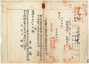 一 台南庁長松木茂俊ヨリ稟申(明治四四年一月六日付台南直第一三号)ノ明治四三年地押調査ニ係ル開墾地一筆限調書ニ基付キ黄伝ヘ長沼二図里竹滬庄ノ開墾地、康多・陳屋・蘇承降・蘇麟・康魯・康紅・陳燦・陳金追・陳輝・蘇羅・陳強・欧業・欧順費・鄭珠安・蘇珍ヘ文賢里海埔庄ノ開墾地、林矮・林能・林当典主史火炉・楊電・呉朝和・曽石章・薜煌・蔡屋・蔡鼻・蔡最頭・蔡忠・蔡丁寅・施良・施評・施棟・蔡金・蔡和・蔡樹・蔡壮・蔡清江・蔡朝林・蔡錦其・蔡老福・陳乞・曽大頭・曽茂・呉海・陳友・陳念・李朝聘・卓老福・林藩福・呉科・林棕・林紅