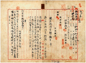 一 臨時台湾糖務局長内田嘉吉ヨリ稟申ノ台南庁保管ノ台南庁大目降里大目降街所在ノ国庫田ヲ臨時台湾糖務局ヘ保管転換方認可ノ件(指令第四四五五号)