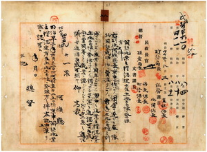 八 阿緱庁長佐藤謙太郎ヨリ稟申ノ阿緱庁管内ノ阮蘭儒・阮達天・阮選儒・阮朝宋・阮鴻儒ヘ港東中里竹仔脚庄、王金相続人ノ王財・王漏丁ヘ港西中里新囲庄、辺牟田喜十郎ヘ羅漢内門里東勢埔庄、藍高全ヘ港西上里三塊厝庄、国庫ヘ港西中里大路関庄・港西上里龍肚庄・同里月眉庄・嘉祥内里南安老庄・港西中里老埤庄・同里隘藔庄・宜化里山脚庄・同里鼻仔頭庄・同里網鈔庄・徳和里龍泉水庄・同里大平頂庄・興文里保力庄・羅漢外門里流溜坑庄、陳炊ヘ楠梓渓東里十張犂庄ノ開墾地業主権認定方及ヒ土地台帳登録方認可ノ件(指令第四二五九号)