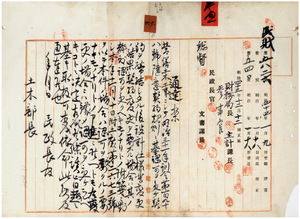 六 営繕土木工事ニシテ明治三一年訓令第一九八号随意契約規則ニ基キ認可ヲ受ケ契約ヲ締結後設計仕様等変更ノ結果契約ノ変更ヲ要スル場合認可ヲ受クベキ旨各官衙長及府内各署局長ヘ通達ノ件