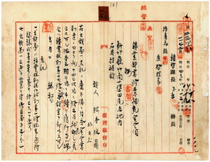 一三 松本徒爾・芥川善治・角居謙太郎・本多清・神谷甚造・黄錬石・鍾勝明ヨリ出願ノ新竹庁管内ノ石炭採掘願ニ付キ明治四三年八月一二日ノ檜山甚兵衛ヨリノ鉱業許可願ト出願重複ノ為メ鉱業規則施行細則第一七条第二項ニ基付キ抽籤ヲ施行シ松本徒爾ヲ優先者ト決定ノ旨石炭鉱採掘願許可並ニ檜山甚兵衛ヘ鉱区訂正願許可ノ件