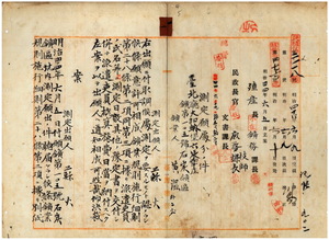 一 蘇火ノ出願ニ依リ台北庁管内ノ石炭鉱区ニ於テ黄湿ハ蘇火ノ鉱区内ヘ侵入ニ付キ坑内測定ノ上蘇火ト黄湿外二名[未記載]ヘ坑内測定図下付ノ件